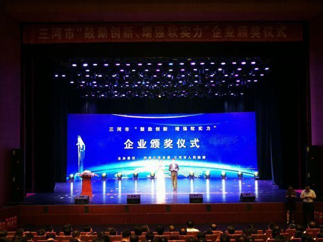 2018年6月20日上午,由中共三河市委、三河市人民政府举办的三河市“鼓励创新 增强软实力”企业颁奖仪式上,三河汇福粮油集团有限公司荣获“三河市创新实力企业”荣誉称号。
